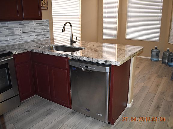 Beautiful newly remodeled home ready for new owners! This home features newer paint, porcelain wood look tile in entrance, living room, kitchen, dining room, hallways and bathrooms. Newer carpet in bedrooms. Upgraded kitchen with granite counter tops, custom backsplash, upgraded stainless steel appliances, custom fixtures. New light in dining room. Dining room with bay window. Window seat in one bedroom. Covered patio and grass backyard. Close to freeway, shopping, restaurants, schools, etc.