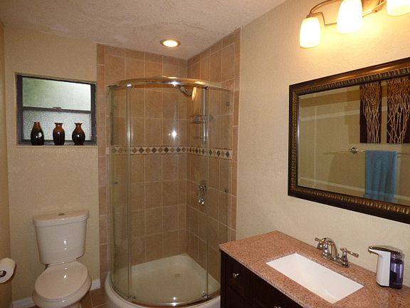 Have you been waiting for a home with the "WOW" factor? Look no further! This is not your typical cookie cutter. So much character and luxury found in this 3 bedroom 3 bath UPDATED POOL home from the moment you pull in the driveway! The front yard is full of beautiful mature trees providing the perfect amount of shade. As you enter the double entry doors, you will find soaring ceilings and a dining room with cherry wood laminate floors, surrounded by stone walls and a double sided wood burning fireplace. The huge living area shares the fireplace and with an abundance of windows, provides just the right atmosphere to enlighten your senses. With a kitchen fit for a chef, complete with stainless steel appliances and a "U" style wrap around Spanish tile countertop, your friends and family will love gathering around. All 3 bathrooms have been remodeled in 2014, providing luxury at its finest. Gorgeous cabinetry, modern tiles and designer fixtures will not disappoint even the most discriminating...reminiscent of a day at the Spa! As you step out through the sliding glass doors, more than ample space awaits under a covered lanai overlooking the sparkling pool, perfect for entertaining the Florida lifestyle! A two car garage provides plenty space for storage, but if that's not enough, there is an adorable shed in the backyard for housing lawn and gardening equipment. Many improvements have been made to this fabulous home...New roof, A/C and Hot Water Heater, Interior and Exterior Paint in 2012.