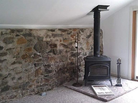 Freshly painted, new wood floor in living room, new trex deck out back, new central air/heat, new sink and toilet in bath, 1 bedroom 1 bath...galley kitchen with fridge, wood burning stove. Hook-up for stackable washer and dryer is available; We are located in Garnet Valley - tucked away from the hustle and bustle. the place is surrounded by nature...trees, deer, birds. Really pretty. There is a koi pond between the cottage and the main house. Water is included. Non-smoker, no pets.