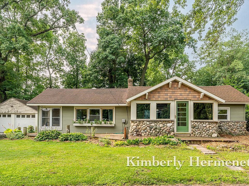 Charming cottage-style house located in a peaceful and quiet neighborhood in the Caledonia school district. This home offers 2 full baths and 2 beds, but could easily convert it back to a 3-bed layout, making it ideal for families or guests. The open floor plan makes living easy and functional featuring original hardwood floors, new flooring in the living room, vaulted ceilings, a cozy sunroom with lots of natural light and exposed wooden logs in the kitchen, dining and primary, adding a rustic character to the home.