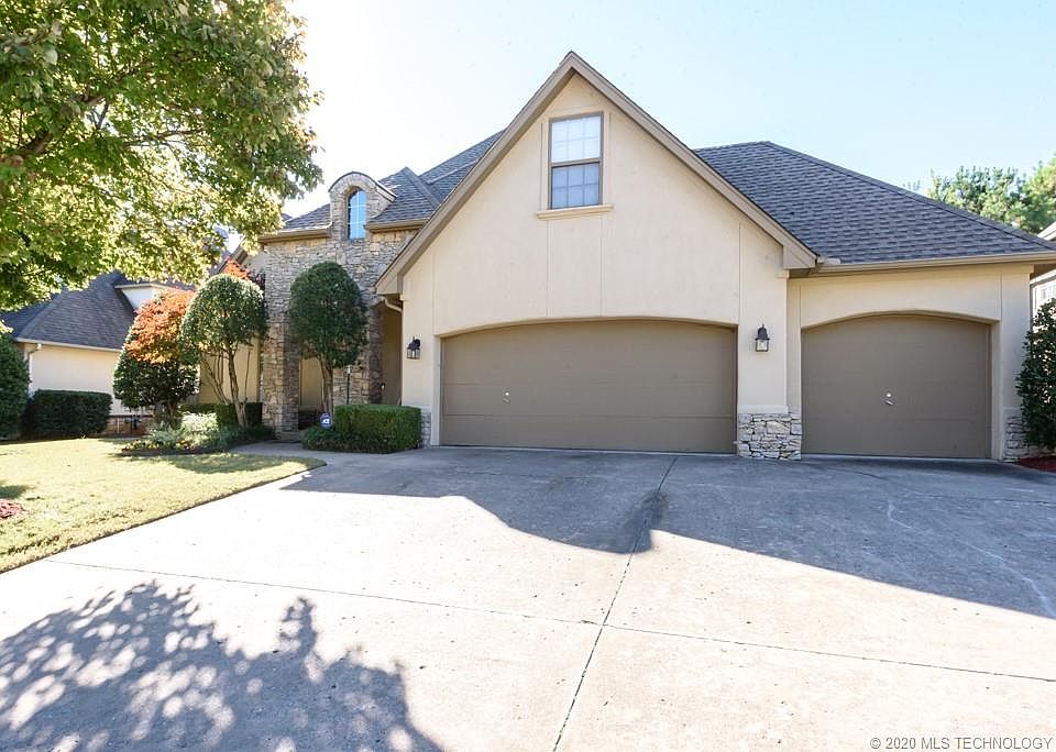Elegant stacked stone & stucco home w/3 car garage in sought after Legacy Park in Jenks school system. Fresh paint and new carpet throughout. Master plus 1 bed or office down, 2 up plus large gameroom, designer finishes through out-wood beams, granite, wood floors, & 2 stacked stone fireplaces.