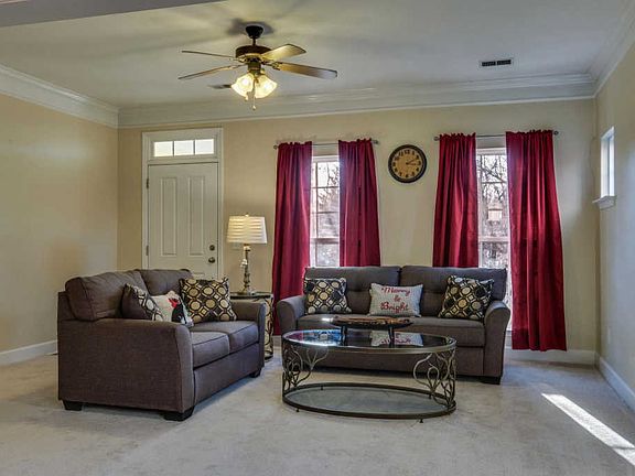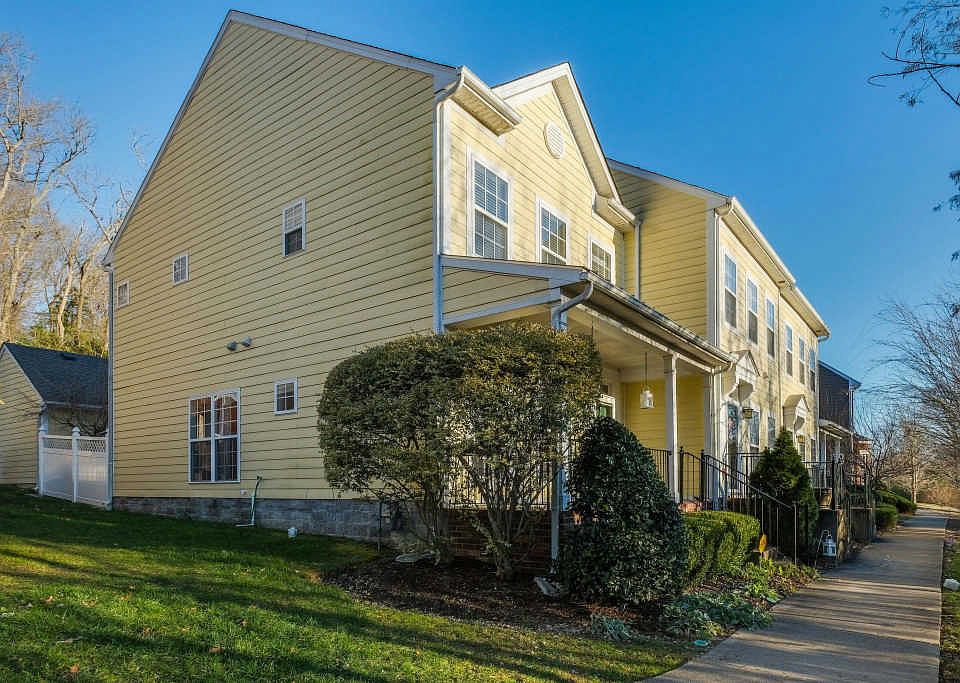 Coveted End Unit with Wooded Views Front and Back~Desirable Open Floorplan~Hardwoods~New Carpet~2 Car Garage & Private Courtyard~Rocking Chair Covered Front Porch~Each Bedroom has Private Bath Perfect for Guest or Roommate~~Crown Moldings on Main Level~Tiled Baths~Walking Community to Restaurants & Retail!