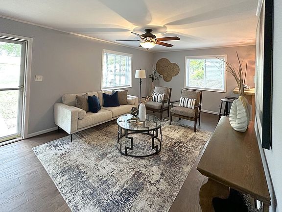Two bedrooms,one bath, 2 car attached garage, Gourmet kitchen opens to living dining area. Jetted soaking tub. All new windows and wood blinds. Screened in porch, brick patio and fenced yard. Google fiber included tenant pays all utilities and does yardwork