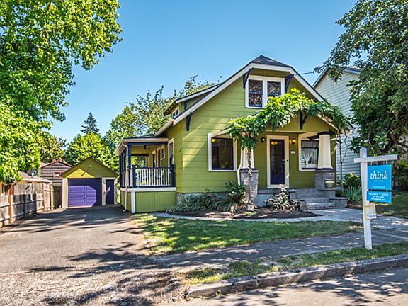 Vintage Bungalow in hot St Johns features, front & side porch, beautiful hardwoods & Fir floors, large open flow living & dining room, kitchen filled with charm has eating bar, and breakfast nook, newer appliances all included, tons of storage, huge separate basement (possibly a future mother-in-law/rental space) sweet yard W/tool shed, over-sized Tandem 2 car garage, walk to Pier Park, blocks to cute downtown St Johns restaurants and shops, public transportation, and rated a score of 81 =Very Bikeable