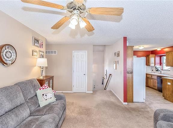Darling home with open floorplan, Kansas City address & Liberty School District! Living Room with fireplace & vaulted ceilings lead into the eat-in dining room & kitchen with breakfast bar. Main floor laundry room directly off the kitchen. Master bedroom features a walk-in closet & private bath. Two additional bedrooms & updated hall bath make this a great family home! Lower level family room makes a perfect additional living space with built-in shelving & walkout to landscaped backyard. Google Fiber installed.