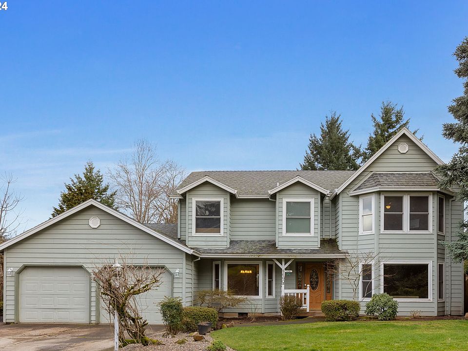 Spacious 2-level home in a highly sought after location! Home has so much great usable space including formal living and dining rooms that can also be used as a play room or converted into a home office. A cozy family room with fireplace and kitchen with eating area looks out to a beautiful backyard. Four generously sized bedrooms upstairs including french doors leading into the primary suite with walk-in closet and luxurious bathroom. Lots of charming and lovely features throughout including skylights for natural lighting, high vaulted ceilings, bay windows, and ample storage spaces. 660 sqft garage with epoxy coating; left side is extra deep great for a home gym or more storage. Backyard with deck and new patio are perfect for entertaining and relaxing. Furnace and water heater are both newer, installed in 2020. Fantastic location with park nearby and .2 miles to Hyland Forest Park with 30 acres of trees and trails! Home is also convenient to Hwy 217, WA Square Mall, schools, and Progress Ridge/Beaverton TownSquare for all your shopping and dining needs!