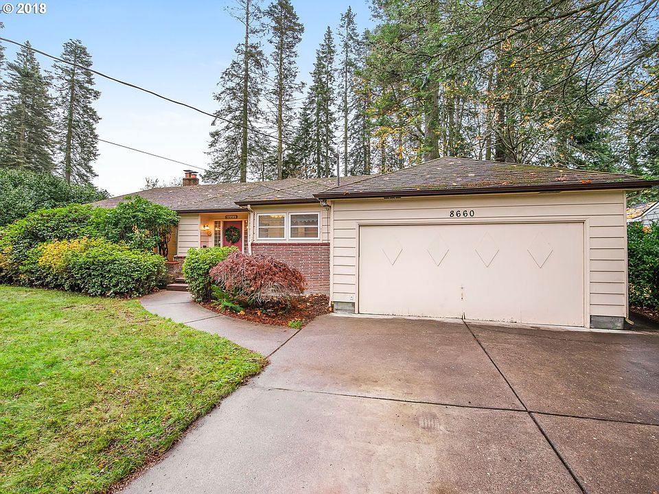 OPEN 12/2 12-3:30 Mid-century gem on secluded .44 Acres/well established neighborhood.PDX address/WA County Taxes.Main floor living!Extra lrg.living rm w/many windows & fireplace.Gorgeous hardwoods throughout.Huge/bright kitchen w/eat nook.Cozy den.Potential in-law quarters off kitchen w/own bedrm/bathrm & 2 entrances.2-story building adjoins shed in back.Plenty parking! Near Jesuit High,OES,New Seasons,Fredies,Bvtn Sq,dwntn.LOCATION!!