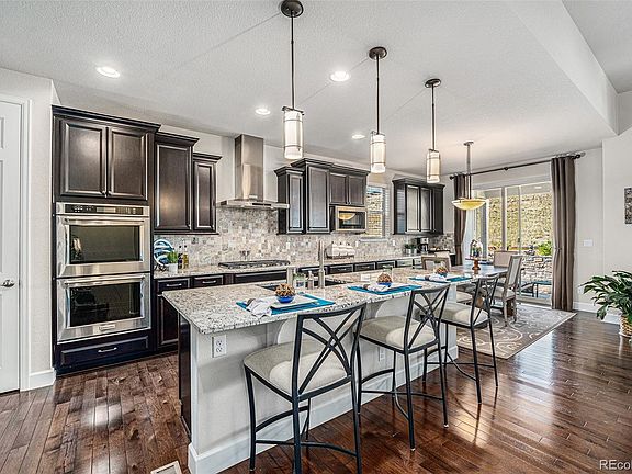 Welcome to this luxurious and perfectly maintained ranch style home located in the desirable Leyden Rock Community. Step inside and be wowed by the open floor plan with tall ceilings, soft color scheme and lots of windows to the outside. The great room is spacious and features a handsome stone fireplace. Hardwood flooring runs throughout much of the main level. The chef's kitchen provides lots of expansive counter space with handsome quartz counters, stainless steel appliances and espresso cabinets. There is both a formal dining room as well as a generous breakfast nook, making entertaining on a small or grand scale perfectly comfortable. The primary suite is off the great room and enjoys views of the open space behind this wonderful home. There is a spacious and luxurious primary bath with dual closets. The main floor is also home to a comfortable second bedroom with private ensuite bath as well as a centrally located main floor study or den and half bath. The builder-finished basement is generous in size and hosts a large wet bar, great room and second primary bedroom and bath. There is great storage space on this level as well. The outside space is serene with a large covered patio that backs to very private open space. At a distance are beautiful views of the nearby foothills. The 3 bay tandem garage is perfect for 2 cars and a workshop or a great space to store your toys. Discover the appeal of Leyden Rock as it features miles of trails, local parks and a community swimming pool and clubhouse. Feeds to excellent ranked Three Creeks K-8 and Ralston Valley High School. An easy drive to Boulder, Olde Town Arvada and lots of hiking/biking trails in the foothills. 15 minutes to FlatIron Crossing Mall and lots of local dining and shopping options as well as local medical care. Discover why this gorgeous home is calling your name. Welcome Home!!