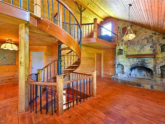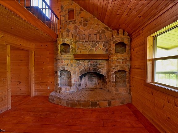 Welcome home to a beautiful log cabin home that sits on 6.67 acres. This home was built in 2002 with three bedrooms and two full baths. The main bedroom includes a bathroom with a separate shower and jetted tub. The fireplace on the first floor was finished with sandstone. There is a loft that has plenty of space, which would make a great reading nook and or office. No matter what side of the windows you look out of in the loft, you look out at the beautiful scenery Mother Nature offers. The basement offers endless entertainment for you or for having a get-together; the theatre room awaits you with the starlit ceiling. Enjoy the outside any time of the year. The porch wraps around the house from the front to the right side of the house to the back yard. Small shed in the backyard. The garage is 40x44, so if you have ATV, it will fit in the garage with your car or truck. A small pond sits on the property to water an orchard with apple, pear, mulberry, and chestnut trees.