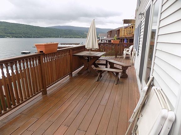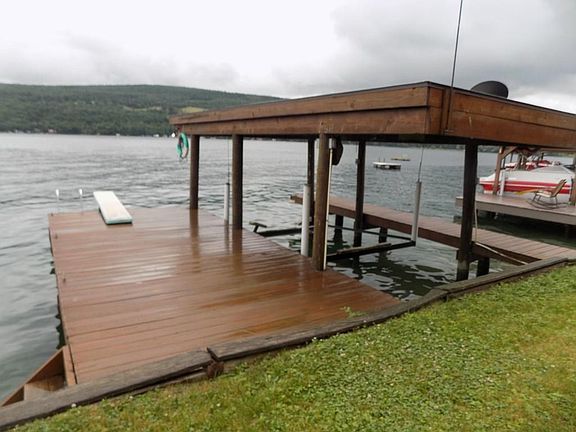 Quality 3 bedroom, 1.5 bath lake home with permanent boat dock & lift. The home was totally remodeled in 1999. There is a wonderful lake view from every room in this home & the kitchen is great for feeding 2 or 50 people. On July 4th sit on this dock or nice deck & see the Hammondsport fireworks. This home is in easy walking distance from Hammondsport. There is parking along 54A.
