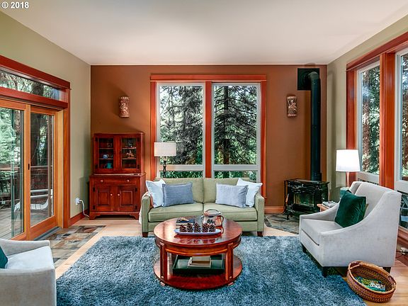 Forest trail leads you down the private drive to escape the hub and bub of life. Brilliantly positioned 50+ windows that look out to private wooded expanse are only the start. Enjoy a well built experience from wool carpets, reclaimed wood floors, craftsman cabinetry & detail thru out, marmoleum in baths, low VOC paints, gas cooking, city water & Clackamas county taxes. Garage, shop & loft make for more magic on this RARE FIND.