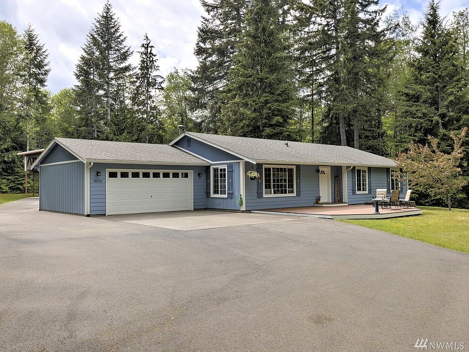Living is easy in this impressive home nestled in the trees to create the ultimate privacy. This property has everything you are looking for; large deck, immaculate park-like setting, low maintenance landscaping, paved driveway, covered back patio, large shop, and RV storage. Enjoy gatherings inside this open concept layout. The floor plan encompasses 3 spacious bedrooms with plenty of room for study, sleep, and storage with 2 full bathrooms. You will feel at home in the well cared for property.