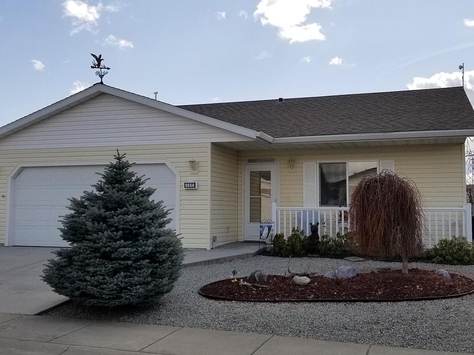 Impressive home in Golden Spike 55+. Great views of Rathdrum Mtn from the covered front porch. Distinct backyard w/beautiful water feature to relax by. Gas BBQ and storage sheds included. Granite Tops and vessel sinks in baths. New sink being installed by 4/6 in Kitchen, upgraded raised panel cabinets w/pullouts, breakfast bar, panty. Gas FA and FP, A/C, all appliances stay. Sky Tunnel in kitchen. Great storage. Heated Drive and newer wifi antenae for community wifi. RV/Boat parking and all the amenities to enjoy.