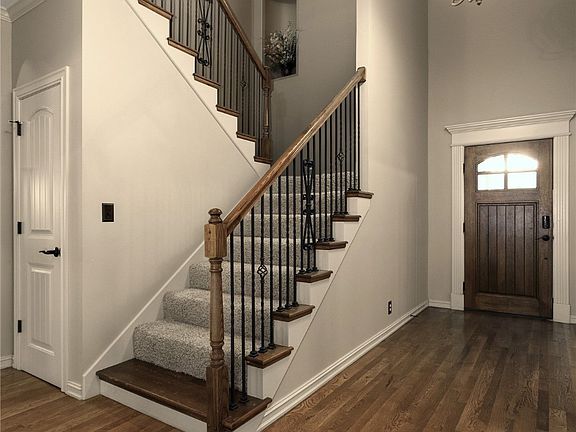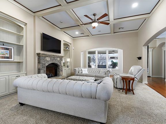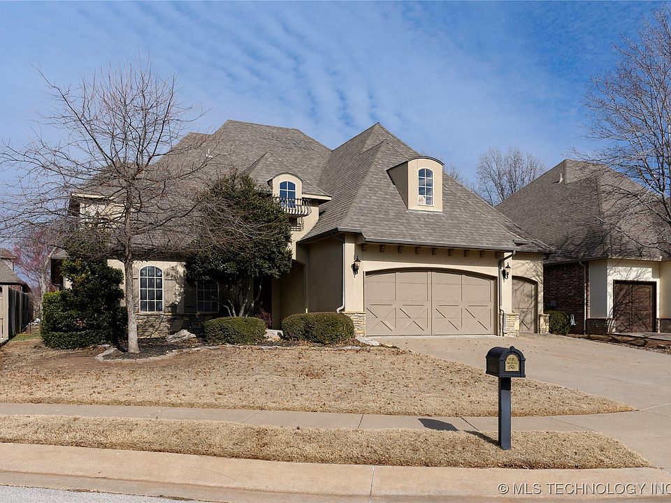 Discover this stunning custon home in the sought after Village at Legacy Park in South Tulsa. The thoughtfully designed layout features a formal dining room, a cozy den with pass-through to the kitchen, a private office, and an upstairs bonus room perfect for any need. Enjoy the high-quality amenities, including ample storage in the kitchen with soft-close cabinets, coffered ceilings in the main living room, and vaulted ceilings with impressive decorative truss beams in the den. The beautifully landscaped backyard is an outdoor retreat, which is easy to maintain with it's integrated sprinkler system. Neighborhood amenities include a park and a pool. Come live the high life! Schedule your tour today.