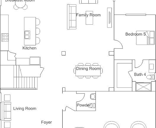 A living room situated off the foyer effortlessly flows into the formal dining room and the open floorplan shared between the family room, kitchen and breakfast area. A covered terrace makes indoor-outdoor living a breeze. The first-floor bedroom is ideal for overnight guests, while a loft and four bedrooms occupy the second floor.