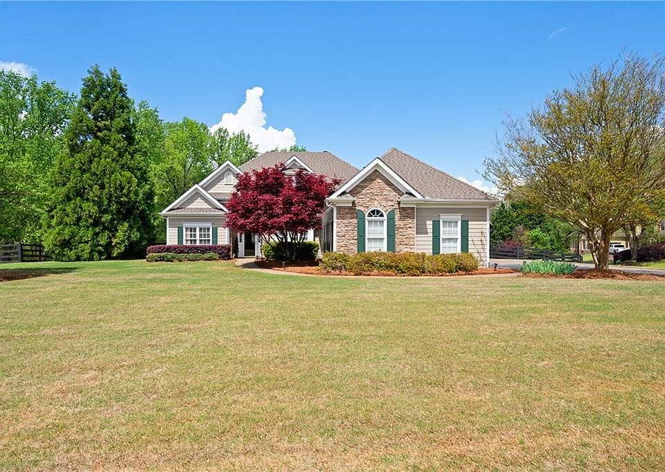 Charming curb appeal in popular Riverstone Plantation with this 1.5 story ranch-style home with master plus 2 additional bedrooms on the main, plus a 4th bedroom, full bath, and loft upstairs. Large .74 acre lot, with landscaped level front yard and driveway leading to 3 car side-entry garage with plenty of daylight. Kitchen features granite countertops, with stainless steel appliances that all stay, plus high end washer and dryer stay. Home is in low traffic area on a side street off the beaten path, with a cul-de-sac on each side of it, a fenced in backyard that you can enjoy from your 4 seasons room (with glass windows and screens) off the kitchen in the back, and with a patio that adjoins it for that backyard barbeque. 9' ceilings, hardwoods, lawn irrigation, speakers in whole house, light dimmers, gas log fireplace, attic entry in two places. Convenient to family-friendly neighborhood amenities that include a pool, 6 tennis courts, a playground, and basketball courts. The new East Forsyth High School is close by, and is convenient to Lake Lanier, numerous parks and trails, shopping and restaurants.