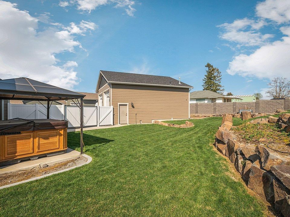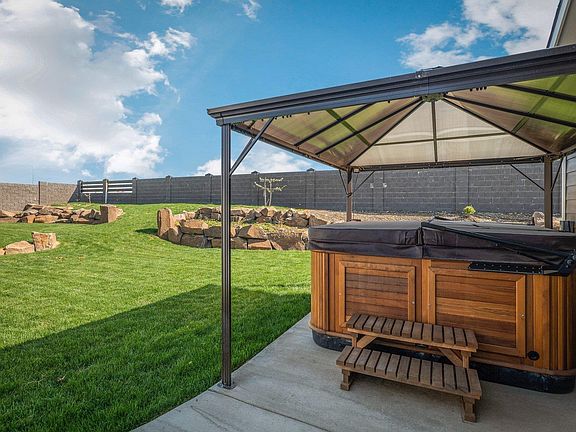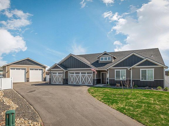 Amazing 3BD/2BA Rancher with 32x32 Shop (Heated, 220 Power, Insulated, Drywalled, 1/2 Bath w/Hot Water Heater, & Direct Drive Garage Door); Plus 3 Car Garage. This 2 years new home in desirable Thayer Farms, features a nice open floorplan with a split bedroom design. Boasting vaulted & 9 ft ceilings, recessed lighting, LVP flooring, Huntwood cabinets, beautifully accented custom tile & granite throughout. Additional amenities include: Kitchen Island/Breakfast Bar, SS appliances, microwave, pendant lights, 2 pantries, formal dining, central air, garden tub, Smart thermostat (range/oven also has option) & On Demand hot water. You'll enjoy the covered back patio for that morning coffee or those summer BBQs. Low maintenance tiered landscaping, curbing, sprinklers, natural water feature, fencing, gazebo with hot tub, massive amount of paved parking & located on over 1/3 acre. A Must See!