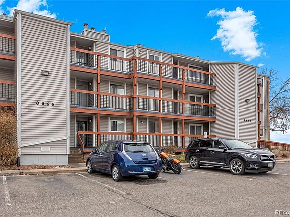 Top floor condo in Prospector's Point complex with Southwest views that overlook open space and the majestic Colorado Rockies! Enjoy the views from your private balcony with a cup of coffee or relax after a long day and watch the beautiful Colorado sunsets! Get cozy in front of the woodburning fireplace during cold, Winter days while watching snow fall on the distant peaks. This open floor plan provides ample space to entertain and the vaulted ceilings with skylights provide plenty of light. The kitchen overlooks the dining and living room spaces and includes a breakfast bar, a great deal of cabinetry and countertops, and a pantry! The spacious bedroom includes two closets, one of which is a large walk-in, adding great extra storage space. Wake up to those mountain views out your bedroom window! All appliances stay with the unit including a stacked washer and dryer and a newer water heater. Close to restaurants, parks, trails, and shopping! Just minutes away from HWY36, I25, and HWY70 for an easy commute! Only 20 minutes to Boulder, 10 to downtown Denver, and close to Westminster Station light rail. Would make for a great first-time homebuyer, investment property, or apartment for college students!