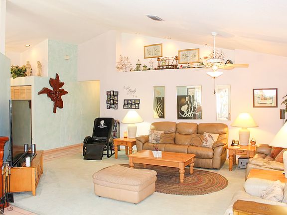 This 3 bedroom home is located on over 2 acres and it is a wow. The home offers a great design with an open design featuring a spacious living and dining room. There's a lot of room to entertain and enjoy friends and family. There is a large kitchen with a lot of counter space, a double oven, a pantry area and even an eat-in kitchen. The bedrooms are spacious and oversized too. The master suite is large, offers a walk in closet and the room that you desire. Your master suite has double sinks, a jetted tub and a separate shower. You will love the house however you will find your outdoor area paradise. You can enjoy your screened patio which is great for alfresco dining. Maybe your favorite will be the open patio which has a space for BBQ's,, sunning area and even a hot tub for relaxing. With 2 acres,, you will be able to enjoy butterfly gardens, areas for reading books, lots of fruit trees, room for animals and your toys too. There's even a gate, fence and dog kennel. The home is CBS, has a new roof and a a/c too. This home has a great location. Someone is going to have their dreams come true with this home. Will it be yours? It can be if you hurry.