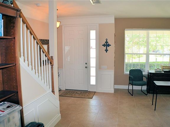 Charming home in desirable gated community - The Preserve at the Lakes of Windermere. From the spacious front porch to the covered Lanai, which provides a quiet wooded view, you will find updates, decorative accents, and additional storage. The combination Living/Dining Rooms are used by the current owners as a spacious two person home office. The Kitchen features upgraded granite counters, stainless appliances, satin nickel hardware and custom display shelving. High ceilings accentuate the Open Concept to provide an open, spacious feel throughout. 20" porcelain tile with 5" baseboards extend through all areas except the 4 carpeted bedrooms. The split layout provides privacy for the Owner's Suite, a center wing for bedrooms 2 & 3 and the 2nd bathroom, and an en-suite Guest Room or Bonus Room upstairs is perfect for Guests. Lots of extra storage is located throughout including an under-stairs storage closet in the garage. The gated Community features a gorgeous Junior-Olympic sized pool with cabana baths, a playground, picnic areas, a Gazebo overlooking a scenic pond and Disney fireworks nightly! Great schools and shopping are nearby, plus easy access to world class entertainment.