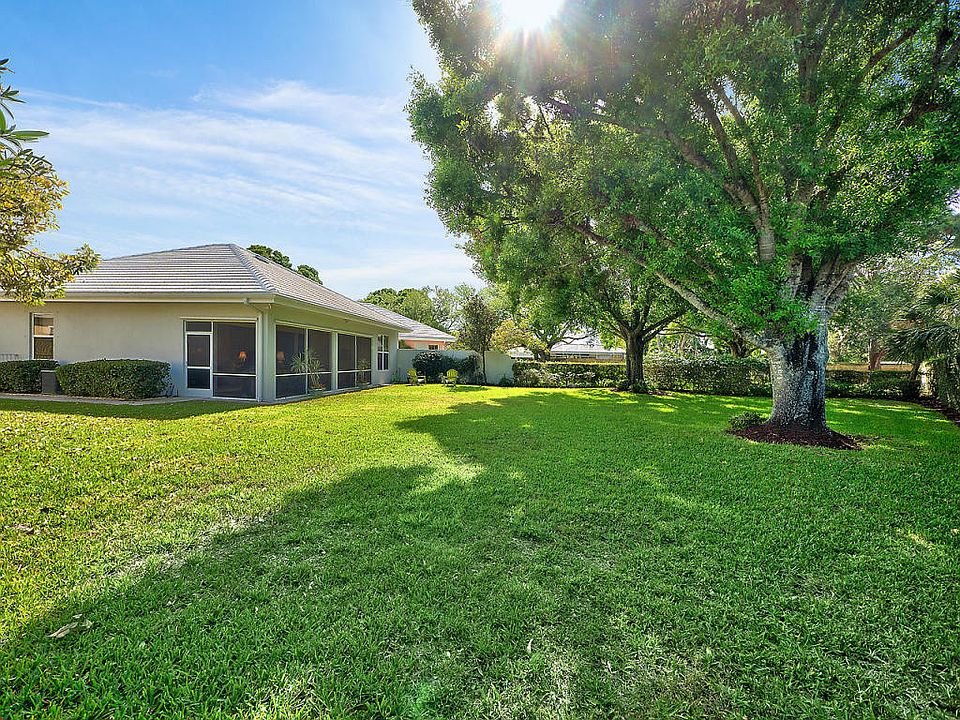 One Of Largest/Private Lots In Community & In Many Other PBG Neighborhoods!This 3 Bed, 2 Bath Divosta Home Was Built With Poured Concrete. Many Features Include Custom Kitchen W/Granite Counter Tops, Tumble Marble Back Splash, Instant Hot Water, Wine Rack, Pull Out Drawers & Convection Microwave, Beautiful Yard & Trees On .24 Acres,Large Screened Patio, Room For Pool, 2009 Roof/Sky Lights, Crown Moldings, Wood Floors, Gorgeous Built Ins- 2nd & 3rd Bedroom/Office, Low HOA Fees, Extra Storage Throughout, Central Vac & Hurricane Shutters/Garage Door. Master Suite Has His & Her Walk In Closets, Double Sinks, Separate Shower & Tub. This Community Offers 24 Hour Manned Gate, HOA Includes Lawn Care (Front Yard, Fertilizer, Sod Plus $85/Qrtly. For Back Yard) Tennis Courts & Community Pool.