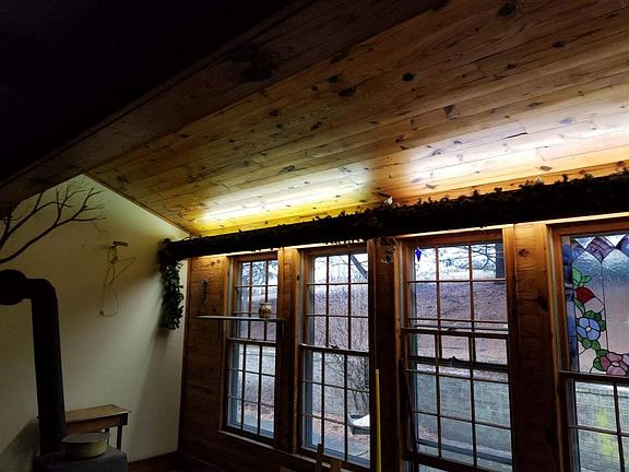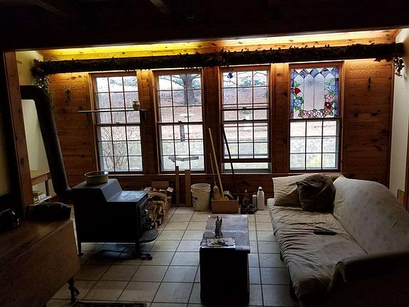 Private setting. Salt Box-Unusual design; heart pine floors and ceramic tile, wood trim, wood win jambs. Lots of personal touches. 4 acres in the TA school district , 2 car garage with apartment over garage. Unfinished basement. Master suite on main level with walk-in closet/dressing room or babies room. Two green house pads with water and electric 30x70 each. Deeded road access.