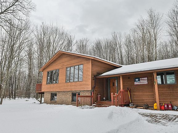 Prime location between Rhinelander, Minocqua, and Tomahawk. This home sits on 18 acres that is adjacent to the approx. 3,000 acres Woodboro Lakes Wildlife area and about 8 of the 18 acres is open field. Residential/farming zoning allows for horses or farm animals. If you are looking for country privacy with room to roam, this is one you will want to schedule a tour of. The house features a huge master bedroom on one end, an open kitchen that walks out to the block deck, two living rooms and bedrooms on multiple levels. The 38x40 pole barn has power and sits away from the house and there's plenty of room for another garage/pole building to be added. Close to numerous lakes, mountain bike trails, ski trails, golf courses, and public land. This setting is truly not something that comes on the market often!