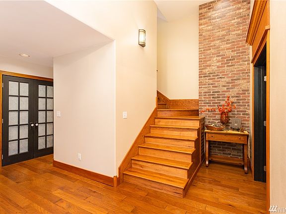 Working from home? Need a change? Gorgeous and well-maintained home with classic features throughout, including hardwood floors, wainscoting, exposed brick, french-doors, glass doorknobs, built in captain's bed, and the Master bedroom on the main floor. Plus, a fantastic bonus room with a fireplace, climbing wall, and hide-away loft to read & study. Lots of open space for crafting &/or home office. Pretty park-like backyard retreat is perfect for gatherings.