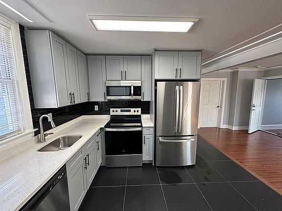 This gorgeous and spacious two bedroom, two bathroom is now available! In the kitchen: All stainless steel appliance, including stainless steel fridge, stainless steel oven, stainless steel microwave, stainless steel dishwasher. The cabinets are high end fashion grey; Granite countertops; Tile floors; Tile backsplash; Extra large Refrigerator. Both Bathrooms are gorgeous! Very high end tile surround in the showers, tile floors, high end hanging wall mounted vanities, high end LED mirrors! Rainforest shower heads! All floors throughout unit are hard wood. Laundry in unit! Beautiful LED lighting strips on ceiling throughout unit; Very spacious! Master bedroom has a master bathroom and a Walk-in closet! Second bedroom has a walk in closet! All pets welcome! Off street parking; private parking lot No security deposit, no pet deposit, no application fee!