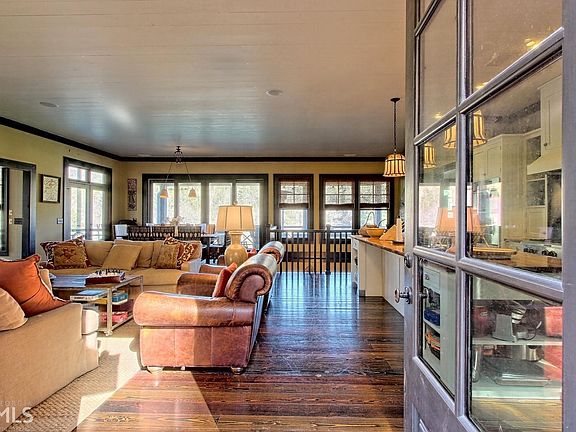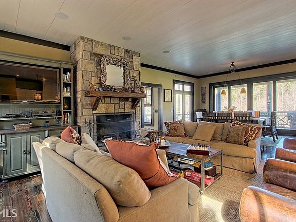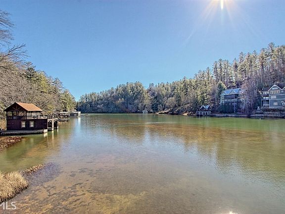 Fee-Simple land, BOATHOUSE HIGH AND DRY IN ALL THE RECENT FLOODING! Executive craftsman-style waterfront home with plank flooring, shiplapped ceilings, wood burning stone fireplace, and unobstructed views of Lake Rabun and the mountains beyond. Chef's getaway kitchen detailed with butcher block tops, farmhouse sink, and KitchenAid appliances including commercial gas cooktop and vent hood. Master suite has a comfortable sitting area looking out over the water, soaking tub, massive separate shower, and closet with built-in's. Numerous screened porches and decks. There is an entire level for guests, and a kid's suite like you've never seen with a sliding barn door. Two story boathouse and a grassy yard down by the swim docks.