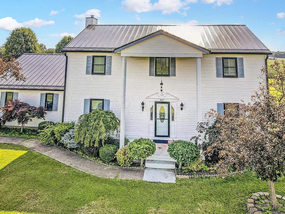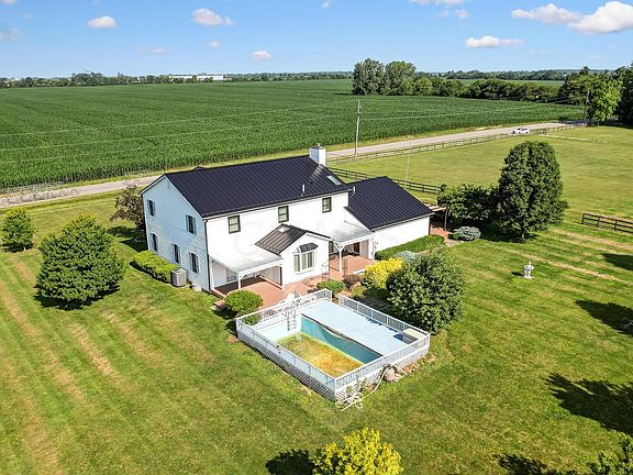Amazing property, perfect for anyone looking for a blend of rural living & modern amenities. As you enter the home, you are greeted w/a soaring entryway setting the tone for this beautiful home. Main level features a den w/its own private entrance, perfect for those looking to run a home-based business. Large owner's suite w/a luxurious bath designed to relax & unwind. Chef's kitchen, sure to impress w/plenty of counter space & top-of-the-line appliances. Step out onto the deck & take in the serene views of fields & pasture areas perfect for outdoor horse arena. Large outbuilding w/3 horse stalls, tack area, loft storage & heavy equipment storage space. Enjoy summer days by the pool! Unique feature: income potential by renting the grain bins (Up to (Up to 12k/yr!) Must See!