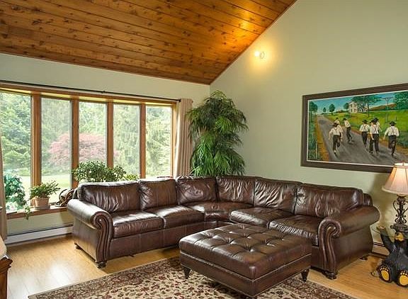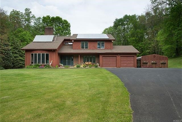 Spectacular home on beautiful private 5 acre setting. Most of the house has had a total makeover within the last year. 2 story family room with floor to ceiling brick fireplace. Dining room with new floor and duel sided fireplace. Amazing kitchen with new cabinets, Quartz center island and new stainless steel appliances with sliders out to the enormous yard. Upstairs you will find 4 large bedrooms and 2 new bathrooms. This energy efficient green home keeps your heating costs down with a wood burning boiler,solar electricity and hot water heater. There is a custom 2 level stone patio, a large garden. A heated 2 car garage. Ideal weekend or year around home.
