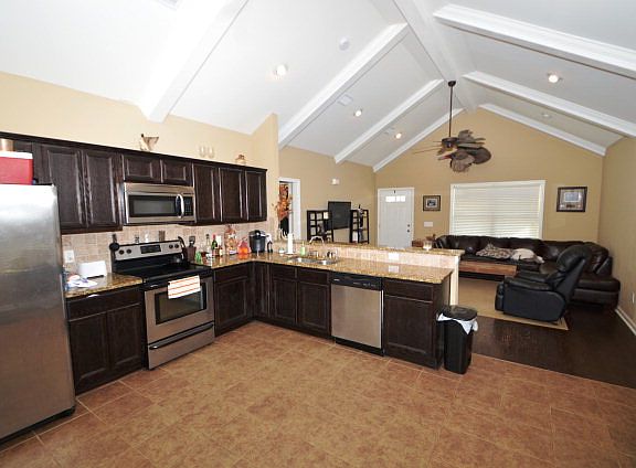 Charming home in desirable neighborhood! Granite counter tops, back splash and stainless appliances offered in the kitchen. Vaulted ceilings, tile and hardwood floors in the kitchen and great room. Split floor plan with the master bedroom having a private bath. Large back yard with no neighboring house on one side. Carport with exterior storage outside. Neighborhood pool and playground.