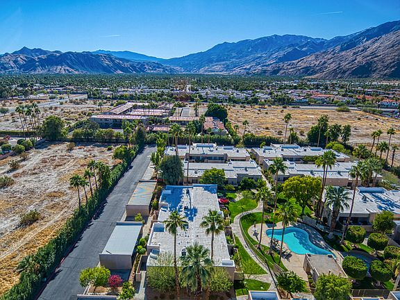 Single-level, single-story 2 bedroom 2 bathroom Casitas Arenas condo located within blocks of restaurants, retailers and entertainment venues including Sherman's Deli, Agua Caliente Casino, Regal Theatre, Starbucks, Hunters and so much more! You'll love living in this resort-style community that is so close to Downtown Palm Springs! One of 40 residences, this end unit condo offers added natural light, is centrally located within the community, is adjacent to the pool and spa, and includes one assigned covered parking space as well as paid for trash service. No land lease, either! Light and bright kitchen opens to the dining and living areas that feature a wet-bar, mountain views, and a sliding glass door that opens to the west-facing patio that offers views and access to the adjacent pool and spa. The kitchen also has an adjacent walk-in pantry/laundry room, too! West-facing Master Bedroom has mountain views, a sliding glass door that opens to the outside patio, a walk-in closet and a private bath with a walk-in shower. On the other side of the condo is the east-facing Bedroom Two which is adjacent to the hallway bathroom with a shower/tub.
