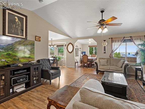 Charming 3-Bedroom, 2-Bathroom Home with Stunning Pikes Peak Views! Welcome to your dream home! This beautifully maintained 1,211 square-foot property features three bedrooms and two bathrooms, perfectly blending comfort, style, and breathtaking scenery. Nestled in a serene neighborhood, this home boasts all Anderson windows, new luxury vinyl plank (LVP) flooring, vaulted ceilings, and incredible natural light. The spacious living room offers panoramic views of Pikes Peak, while the modern kitchen with sleek appliances and ample counter space adjoins a sunlit dining area. The primary bedroom is roomy and bright, complemented by two additional versatile bedrooms, perfect for guests, a home office, or a growing family. Outside, enjoy your private fenced backyard—ideal for gardening, playing with pets, or hosting barbecues. You can't help but notice no neighbors directly behind for some more privacy. Additional features include a convenient laundry room, ample storage space, and a two-car garage. Located close to parks, schools, and shopping, this home combines the best of suburban living with easy access to urban amenities. Don’t miss the opportunity to make this incredible property your own! Schedule a viewing today and experience the charm and comfort of this exceptional home.
