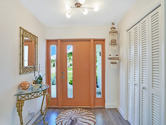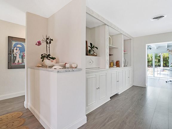 This stunning ''Palm Beach'' inspired, perfectly updated, 3/2 open split floor plan, 2 car garage and salt water pool is situated right in the heart of the Village of North Palm Beach with NO HOA! Designed for entertaining, this home features CBS construction, hurricane impact windows and slider doors, 2020 concrete tile roof, front door with decorative glass accents, oversized island with soft close cabinets, marble countertops, stainless steel appliances, additional bar area with wine fridge, high end lighting and fixtures, custom built-ins in the large master walk-in closet, a separate accessory closet in master bedroom and extended master bathroom with a bench in shower. Spacious, oversized, fenced in yard with a 2017 built salt water pool.