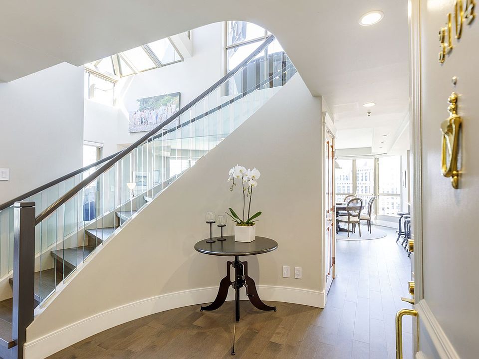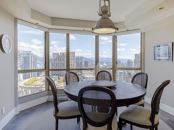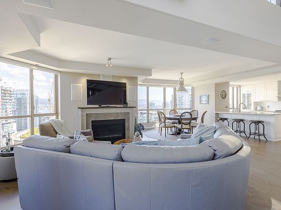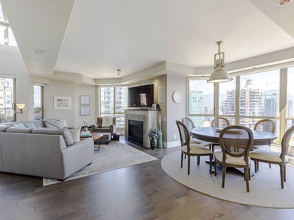 This upscale 2 level 1821 sq.ft penthouse is designed for you! This home features a stunning spiral staircase with multiple outdoor terraces to enjoy sweeping panoramic city, mountain, and water views. This beautiful home features an upgraded chef's kitchen seamlessly integrating to the dining and living room with floor to ceiling windows. Located blocks to the Seawall and Yaletown, offering some of the city's best dining options. This home is perfect for all families! A short walk for working professionals to the Financial District and tech hub with companies (Microsoft, Amazon, etc!). Growing families can turn one bedroom into a nursery or a full-size office for those working from home. Downsizers can enjoy the spacious layout and host friends and family. Priced below assessed value!