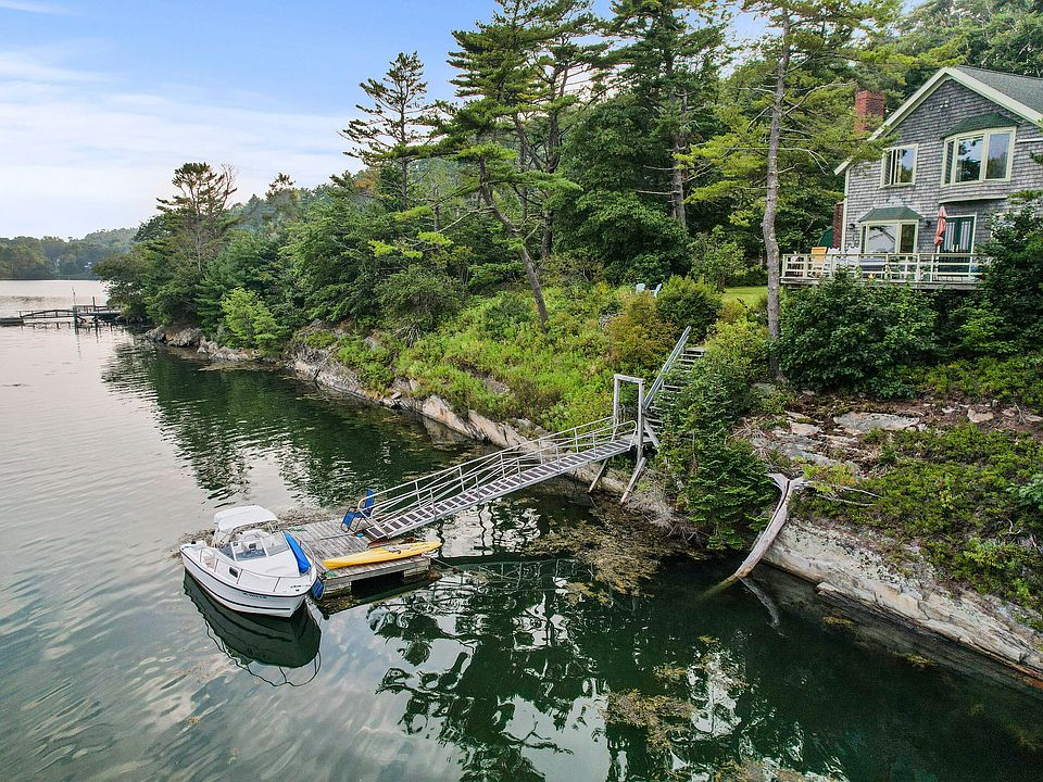 This adorable contemporary, two bedroom, 1.5 bath waterfront home sits nestled on the shores of Card Cove on Great Island. The perfect island getaway for the summer, or make this your year round home! Enjoy a deep water dock ( owner just installed a brand new ramp), perfect protected waters for kayaking and exploring inside the cove, swimming, fishing, and all within close proximity to Brunswick, yet minutes from all that Harpswell has to offer; restaurants hiking trails, etc. Detached garage with lots of storage space above, and a new shed that had been converted into an art oasis on the water! The possibilities are endless!