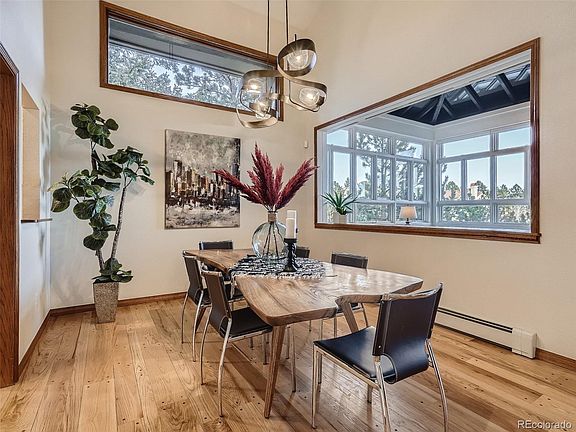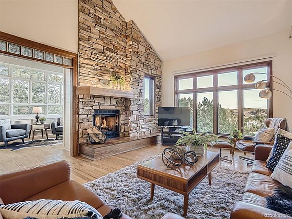 Welcome To Your Foothills Retreat! Experience this beautiful townhome's perfect blend of mountain tranquility and modern convenience. This private end-unit is in the exclusive, gated Riva Chase community, just 15 minutes from Denver and less than an hour from world-class skiing. Step into the spacious living area, where vaulted ceilings, exposed wood beams, and plenty of windows let in natural light and showcase stunning views. The floor-to-ceiling stone fireplace adds a cozy touch, making it the perfect spot for relaxation. The elegant dining room is ideal for entertaining, offering a perfect space for hosting family and friends. The eat-in kitchen boasts ample cabinet and counter space, newer appliances, and direct access to a large, private Trex deck, ideal for outdoor dining and relaxation. The sunroom provides a versatile space you can enjoy year-round. Wake up to beautiful sunrise views in the primary bedroom, featuring a wall of windows and an updated bathroom that offers modern comfort and style. A remodeled half bathroom on the main floor provides convenience for guests, while the main floor laundry room, situated off the garage, adds to the home's practicality. The lower level includes two spacious bedrooms sharing a Jack and Jill full bathroom. Additionally, the room at the end of the hall is perfect for a home gym or office, providing flexibility to suit your lifestyle. Riva Chase offers numerous amenities, including three ponds, scenic trails, abundant wildlife, and a community area with a playground, a gazebo, and outdoor grills. Don't miss your chance to make this dream townhome yours!