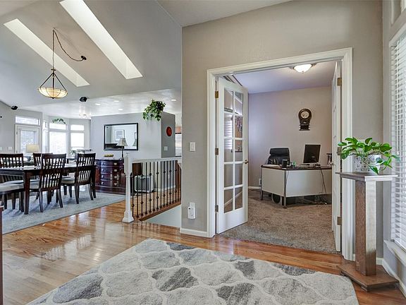 Home Farm Ranch on quiet cul de sac facing Southwest/Northeast for maximum sun, inviting covered deep entry porch. This beautiful Home offers spacious open concept design, vaulted ceilings, wood floors and large windows for lots of light. Main level has Living room with fireplace, formal Dining area, Kitchen and private Office, Master suite and guest bedroom. Kitchen boasts solid surface counter tips, stainless steel appliances, eat at bar area and breakfast nook overlooking the back yard. Master suite has a huge walk in closet, on suite 5 pc bath with dual sinks. Fully finished Basement with new radon system, additional Family room, 2 Bedrooms and Guest Bath. Outside enjoy maintenance free siding, fully landscaped mature fenced yard, large deck and sprinkler system.