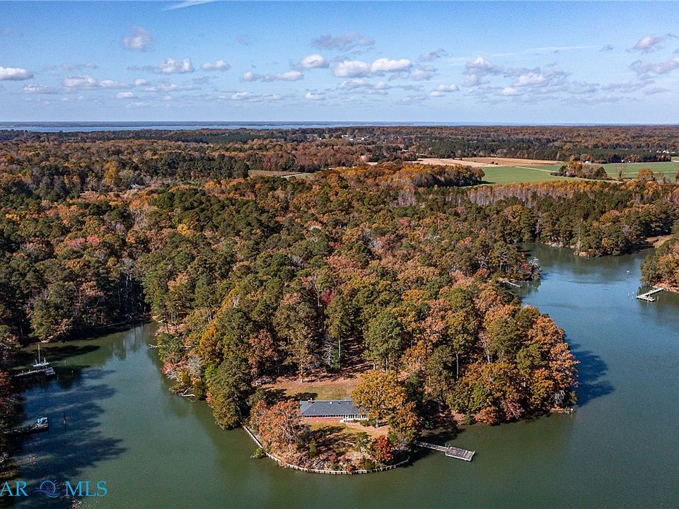 Gorgeous POINT of waterfront on the protected Myer Creek just off the Corrotoman River. Sailboats Welcomed! 6'+ MLW at the Floating Dock with an easy drop to deeper water. Great DEEP Water in a Protected Cove. The solid brick ranch-style home has great waterfront views from ALL rooms & nice open spaces to entertain & enjoy. The Living Room has gas logs in the stone fireplace & is open to the Dining Area & Kitchen. The Kitchen was remodeled in 2009 with Stainless Steel Appliances, Granite Countertops, a center island, & tons of storage with an ample amount of cabinets & a pantry. Enjoy the Sunroom with FABULOUS Creek views & exterior access to the waterside. The primary bedroom has an attached full bathroom with a double-headed tile shower, a large closet, & exterior access. There is a detached workshop with guest apartment potential above. This property sits on a gorgeous point of waterfront, everyone will enjoy these views! The home is being sold with 23.87 acres and 2,046 ft of water frontage.. Yankee Point Marina is just up & across the creek with a full-service marina, dining, pool, & much more! Venture out into the River for great boating & fishing! Kayak in the protected Creek! You will be swept away by all the waterfront views & fun that awaits here!