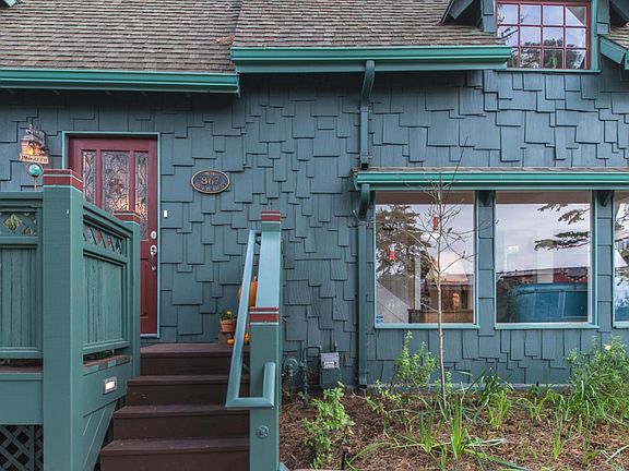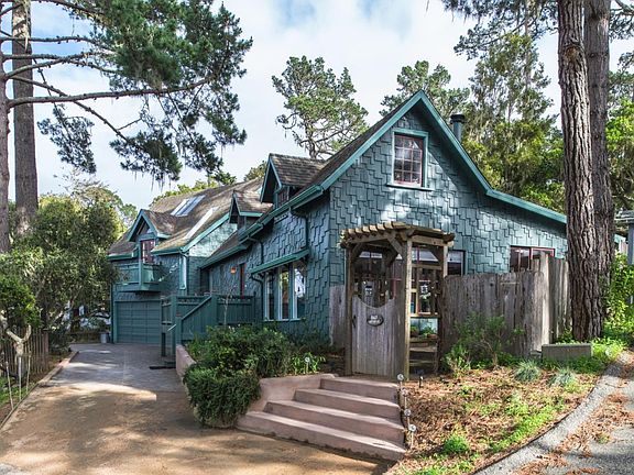 Carmel Charm in New Monterey - There is nothing "traditional" in this Carmel-like Monterey home. Grandly perched on a corner lot with a partial bay view, this 3 bedroom 2 bath home is in move-in condition with red oak flooring, French doors and windows galore providing abundant natural light from nearly every room. Updated in 2012 this uniquely designed home has a kitchen with stainless appliances & honed granite counter tops, a separate family room, charming loft area, tiled baths and plenty of storage. Outside you will enjoy the charming patio with concrete pavers, stone gas fire pit and built-in counter & sitting areas. An attached 2 car garage with paver driveway, and a 1,500 gallon cistern for rainwater collection, are a couple of the many amenities enjoyed in this incredible home.