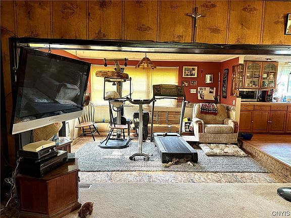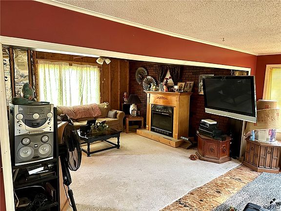 This 2 Bedroom Ranch in the Town of Scriba features 1800 square feet and over 1/2 acre of land. The kitchen, dining and living room has the open floor plan that everyone loves. Kitchen has great amount of working space, Oak cabinets with island area great for entertaining. Hardwood floors in living room and kitchen. The living room is great size with gas fireplace and built in A/C wall unit. The primary bedroom is oversized with built in office space. The second bedroom needs some finishing work - started with new insulation on the walls. The bathroom is nice size with Jacuzzi tub. Bonus room that is used for laundry and storage. Don't forget the two car garage with extra storage and workshop space. The Hot water tank is 3 years old and Roof is 2 years old. Don't miss out on this Ranch, with little love you can bring this house back to all its charm. Property is Being Sold As Is. 2023-08-30