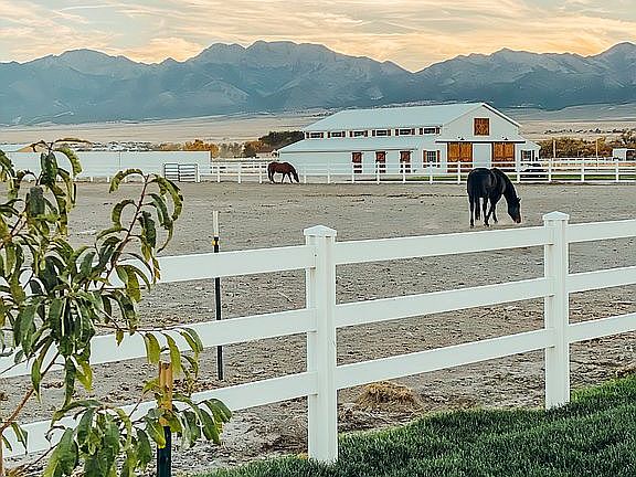 Upgrades galore. Central vac. Butlers pantry with Costco door leading to garage. Home intercom system. Master on main. Theater room. Additional basement kitchen. Indoor basketball/sports court. Enclosed sunroom. Personal washer and dryer in closets. Children’s play loft with slide. Giant storage room under walk around porch. Exercise gym. Outdoor fireplace on porch. Hot tub out of master bedroom. 5.25 fully fenced acres with two large pastures. 4,000 square foot finished event barn/studio with full kitchen, bathroom and bedroom. Long asphalt driveway. Fully landscaped with 20,000 square feet of lawn. Over 60 trees planted in the past two years. Nice garden shed with raised garden beds. Chicken coop. Out buildings.