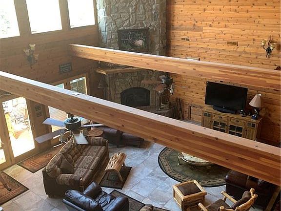 Luxury Lodge meets the perfect acreage! This farm has EVEYRTHING and I mean EVERYTHING a person could ever want. 5 master bedrooms with private baths, custom hickory kitchen cabinets and granite countertops, ceiling high stone faced fireplace, vaulted wood ceilings, wood car siding, huge dining area and bar area with icemaker, custom hand made steps to the loft game room, screen porch, 2 covered porches, security system, zoned HVAC, 2 on demand gas water heaters and custom wood furniture throughout the home. History has been preserved in the amazing spring house that feeds the creek just off the screen porch and covered deck. 9 springs flow all over this property and there is also 2 ponds and a 7 acre stocked lake with dock. Fenced, cross fenced, corral, pinch pen and tractor shed all conveniently located for easy access. As an added BONUS there are 4 FULL 30 amp RV hook ups. 2250sqft garage! Hunting lodge, cattle farm, horse ranch, personal or corporate retreat.......YOU DECIDE!!