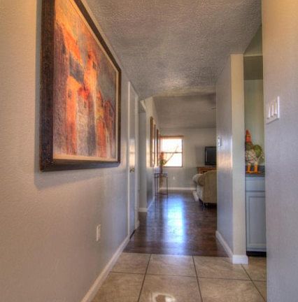 This great starter home was recently remodeled with fresh paint and carpet. It has charming curb appeal and a large lot. Outside you'll find low maintenance, desert landscaping, covered porches front and back and a storage shed. Inside you'll find 3 bedrooms, 2 bathrooms and great upgrades! The kitchen has tile floors, custom cabinets, lots of counter space and ample storage. This open floor plan is light and bright! The living room has laminate wood flooring and shows like a dream. Come by and see this SW Rio Rancho dream home today.