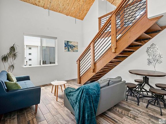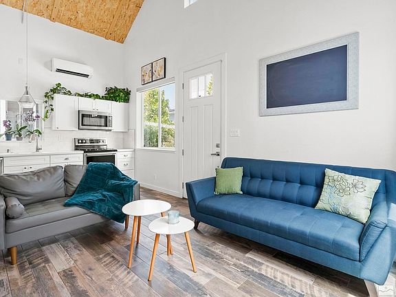 Welcome to the vibrant Tiny Ten community built by award winning contractor GuiDenby to experience upscale living with modern and energy-efficient design. Step inside this low maintenance “glove home” to discover its thoughtful design where “it’s not too small, not too big, but fitting like a glove.”, The newly built home was designed with energy-efficient building envelopes that exceed the requirements ensuring superior insulation and reduced energy costs while still featuring high ceilings and allowing for abundant natural light. The beautiful and fully equipped kitchen is a highlight, featuring full-size built-in appliances, including a dishwasher, microwave, electric range, and refrigerator. Modern white cabinetry and a beautiful tile backsplash seamlessly combine functionality with style. The primary bedroom features a full size closet and sliding glass doors leading to a private and gated backyard. The loft, which includes a full size closet, can be used as a bedroom, office, or gym offering additional space and versatility. The bright and modern bathroom features a full-size bathtub and a stackable washer and dryer. Step outside and enjoy the private courtyard that is landscaped with drought-tolerant plants for easy upkeep. The detached one-car garage is a major plus and provides for additional storage space. The HOA takes care of common area maintenance and snow removal. The seller replaced the oven a couple years ago. These homes are commonly rented to traveling nurses with a 30 day minimum lease. Please verify with HOA.