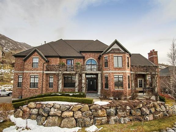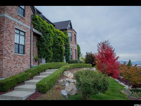 Ready to entertain from the top of the world? This majestic brick 2-story sits high on the bench, perched at the top of a cul-de-sac, and boasts unobstructed views of Antelope Island. Lots of unique features you won't see in other homes! Grand entry opens to beautiful rich cherry hardwood floors, open upper balcony, formal living/den, formal dining, and a wet bar. Leaded glass doors and accent windows over doorways, and faux paint. Large "octogonal" family room with surround sound, extra high ceiling and stone surround fireplace. 2nd fireplace on main level in the semi-formal dining/kitchen area. Huge, incredible master suite with dark hardwood flooring, high ceiling, fireplace, and sitting room. Second master suite upstairs with private bathroom, vaulted ceiling, and access to the balcony deck with forever views to the lake. The 3rd and 4th bedroom upstairs share a Jack & Jill bathroom. Fully finished daylight, walkout basement with mother-in-law apartment, and large kitchen. Theatre "room" downstairs, and bathroom down has a very cool steam shower. Large terraced backyard with firepit. Located near the Davis Creek Trail and Bonneville Shoreline Trail. And did we mention the VIEWS?!