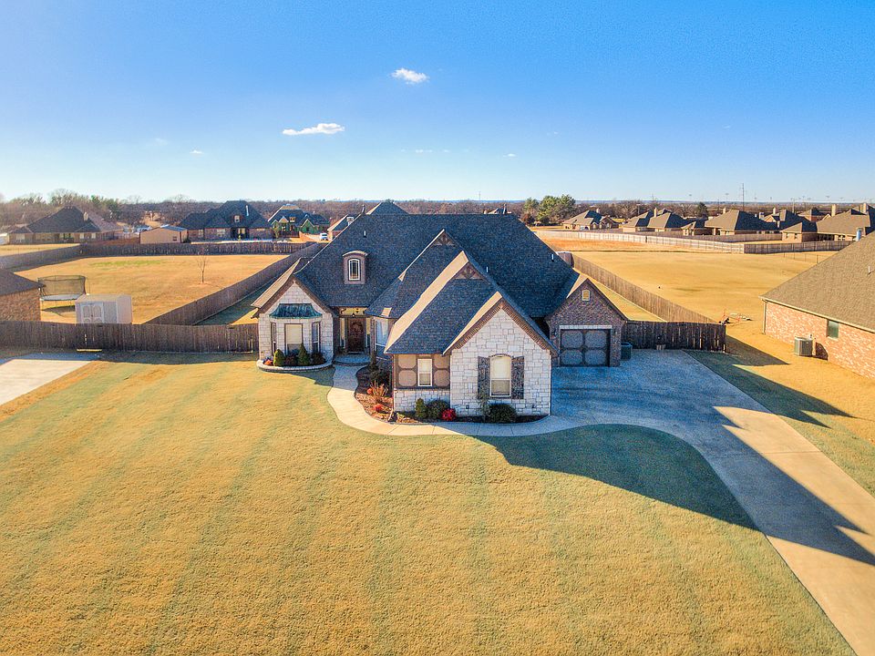 Beautiful inside and out. Formal Dining or Second living is elegant surrounded with columns. Living is spacious with wood-burning fireplace and lots of windows with view to the vast back yard, covered patio, large above-ground pool, and fire pit. Granite counters are exquisite. Down-drafted built-in stove in the island. Large master and master bath with jetted tub and great shower! Mud room is large enough for an office. The HUGE upstairs bedroom can be a theater room or bonus and has its own bath. Two secondary bedrooms are joined by a Jack and Jill bath downstairs. Zoned HVAC for lower bills. Great floorplan for entertaining or raising that family. Two-car plus 1-car garages, side-entry for a pretty curb appeal. Extra parking also. Call for your tour today!