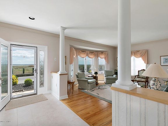 This beautiful home faces the Bay, Old Barney, & a bird Sanctuary. Fantastic views! Some features are: vinyl 93ft. bulkhead, 90'dock with water & electric, large decks with retractable awning. Beautiful landscaping with in-ground sprinklers, hardwood floors, crown moulding, 2-car garage with epoxy flooring; security system, built-in surround system, gas fireplace, 9ft ceilings, open floor plan, stainless steel appliances, Andersen windows, Timberline roof. Newer furnace & A/C(2-zone). Huge and gorgeous Master Bedroom with sitting room.